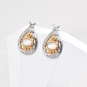 ✨ Artisan Original Design Two-Tone Mother of Pearl Teardrop Earrings