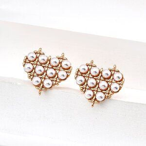 ❤️ Artisan Original Design Woven Pearl Heart Stud Earrings | Sterling Silver