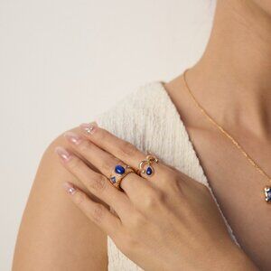 ✨ Artisan Original Lapis Lazuli Dangle Crown Ring | S925 Gold Adjustable