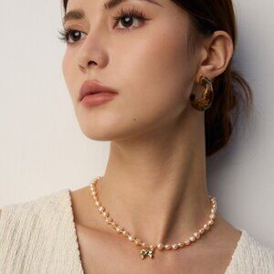 🎀 Artisan Original Pink Pearl & Bow Choker Necklace | S925 Gold Coquette