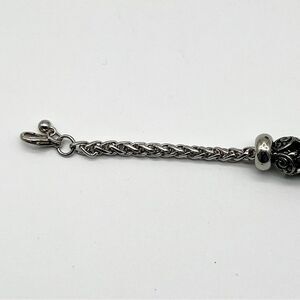 Artisan Ornate Silver Tone Blue Glass Bead Cross Charm Memory Bracelet 7.5”