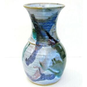 Artisan POTTERY VASE Teal Purple Pink Blue White Decorative Signed AL Studio Art
