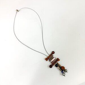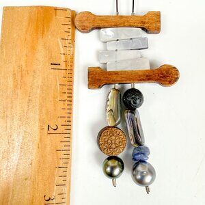Artisan Pearl Abalone Lapis Lava Stone Beaded Bolo Style Necklace Boho Unique
