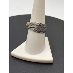 Artisan Pebbled Sterling Silver and Brass 6mm Opal Cabochon Floral Ring Sz 9