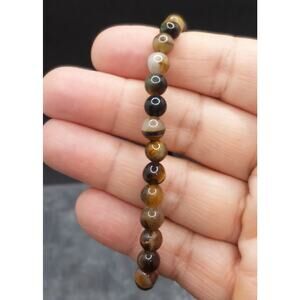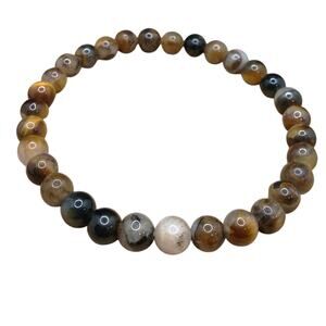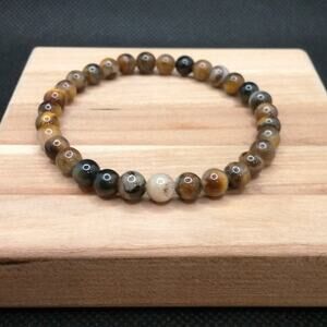 Artisan Pietersite Natural Stone Bracelet Earthy Color Beads Bohemian Stretch
