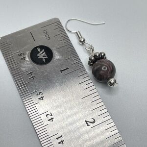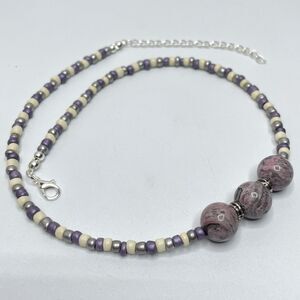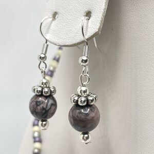 Artisan Purple Gray Jasper Gemstone Seed Bead Necklace Earrings Set Silver Tone
