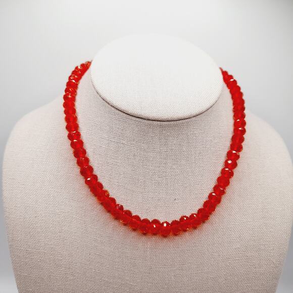This striking artisan-made necklace features vivid red faceted crystal beads, hand-strung on durable wire for strength and structure. The rich red crystals catch the light beautifully, creating a bold yet elegant statement piece.