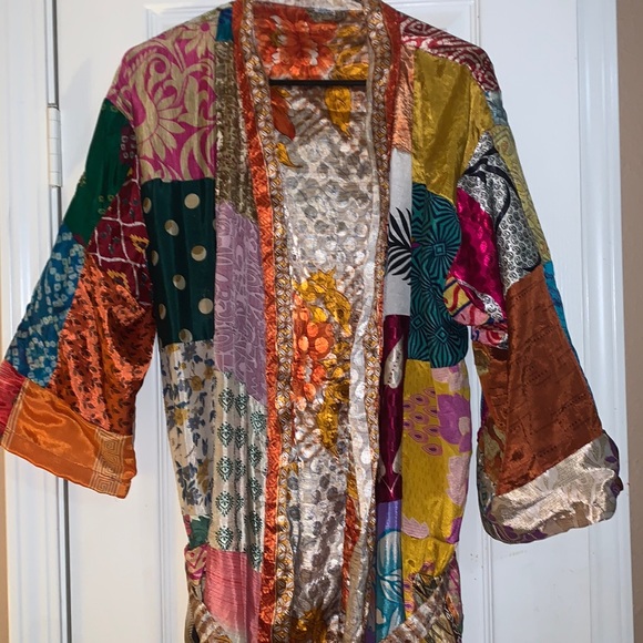 Silk Reversible Robe with Front Pockets and Belt Good Condition