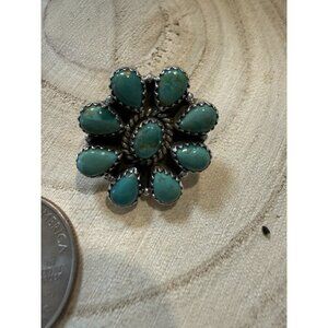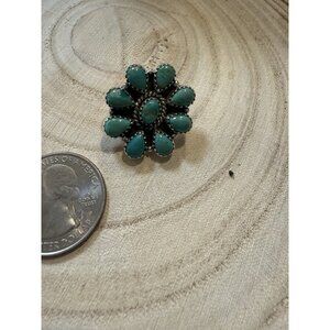 These Artisan STERLING SILVER Large TURQUOISE CLUSTER Statement EARRINGS are a stunning piece of Southwest jewelry. Handmade with natural turquoise stones in a cluster setting, these earrings showcase the beauty of the Western and ethnic themes. The turquoise color and cabochon shape add a pop of unique style to any outfit, making them a standout accessory for women who appreciate artisan pieces. The sterling silver metal adds a touch of elegance, and the stud and post cluster style ensures a comfortable fit on the lobe. Perfect for those looking for a statement piece with a touch of Southwestern flair. Please view all photos as they are part of description