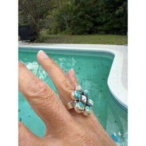 Artisan Sea Sediment Jasper Wild Horse turquoise SS 925 Statement cluster Ring