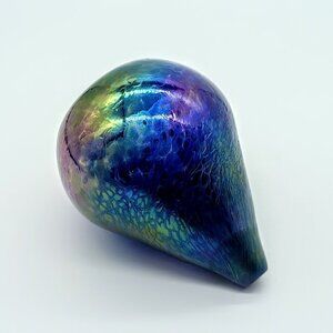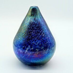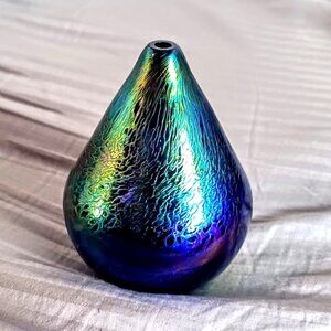 Artisan Signed Blown Glass Iridescent Teardrop Oil Lamp Bud Vase