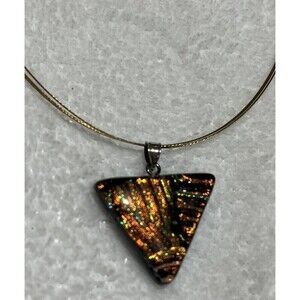 Artisan Signed Dichroic Glass Pendant Sterling Silver Irridescent Sterling Cord