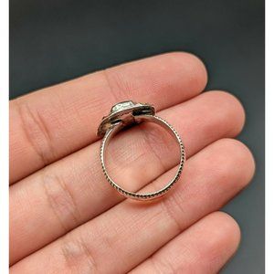 Artisan Signed LOW Fiery Natural Opal Sterling Silver Gold Ring Size 7