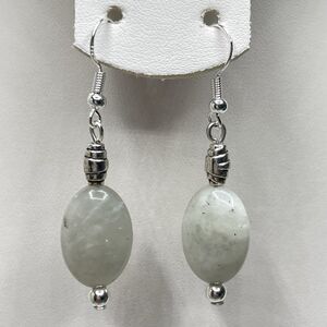 Artisan Silver Plated Light Gray Jade Stone Beaded Dangle Earrings Boho Cute