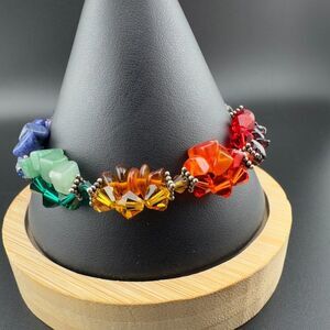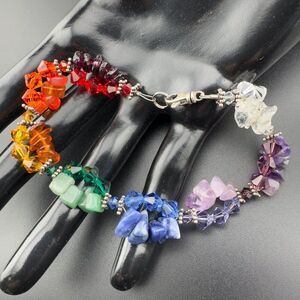 Artisan Sterling Silver Beaded Multi-Gemstone Cluster Rainbow Chakra Energy Bracelet 7.5". Multi color stone and Swarovski crystals. Lobster clasp closure marked 925. Great condition!