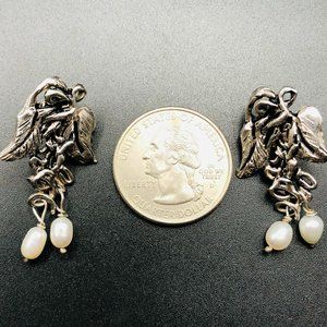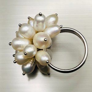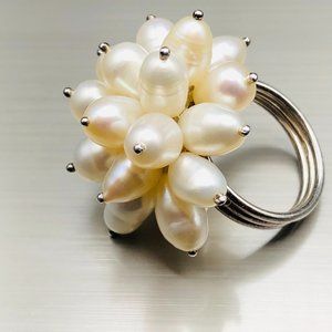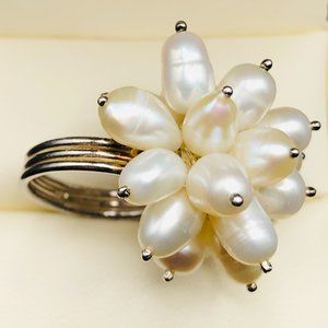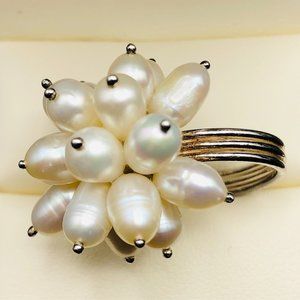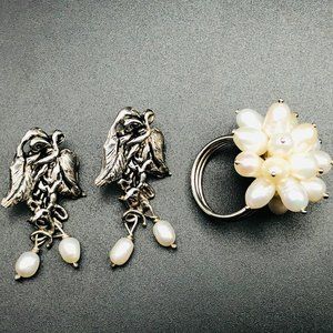 Artisan Sterling Silver Pearl Earrings & Cluster Pearl Ring Size 5 - 18.2 Grams