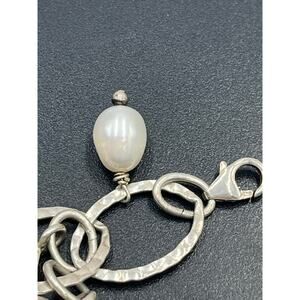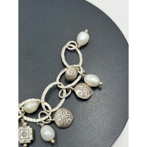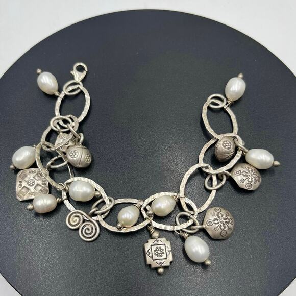 Artisan Sterling Silver White Freshwater Pearl Ladybug Link Charm Bracelet