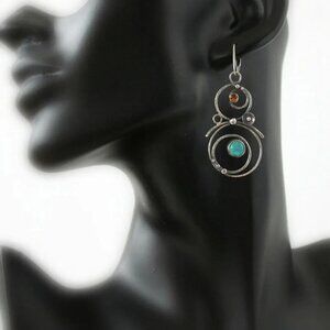 Artisan Style Earrings Blue Gemstone Chandelier Silver Tone 2 Inch