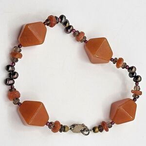 Artisan Tahitan Pearl Agate Sterling Silver Bracelet 8in | Materials: Tahitian Pearl, Agate | Length: 8in | Clasp: lobster clasp | Signed? 925 | Excellent vintage condition