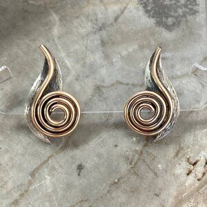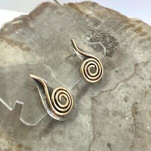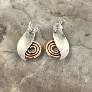 Artisan Textured Sterling Silver 925 Copper Mixed Metal Spiral Stud Earrings