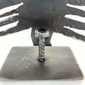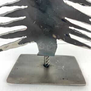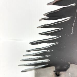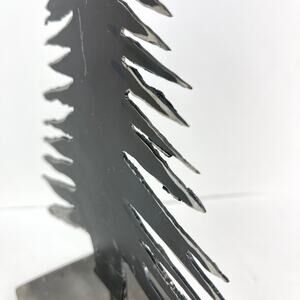 Hand cut 1/16" thick sheet steel christmas tree that stands about 11.5" high and 7" across the bottom of the tree. A real conversation piece that would look good on any table, shelf, or mantle.