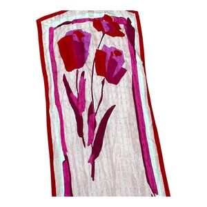 Artisan Tulip Print Silk Scarf Ann Klein Elegant Lightweight Silk Chiffon Oblong