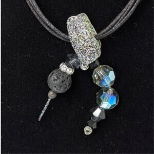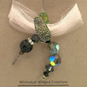 This artisan necklace features a whimsical winged hummingbird pendant with a diffuser lava stone. The black color adds a touch of elegance and versatility, making it a perfect accessory for any outfit. Enjoy the calming effects of your favorite essential oils with this beautiful and functional piece.
