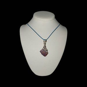 Artisan Wire Wrapped Silver Necklace with Pink and Purple Stone on Blue Cord wit