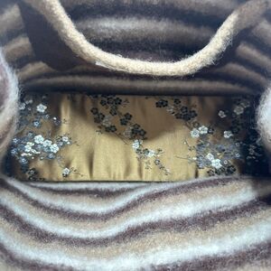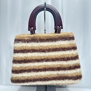 Artisan Wool Handbag Purse Removable Flowers pins Wooden handle Cottage artsy