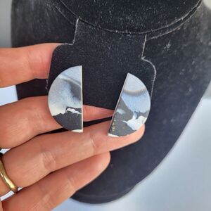 Materials: Grey black and Gold flaked ceramic clay with sterling silver post stud Length: 1.25" post stud butterfly back