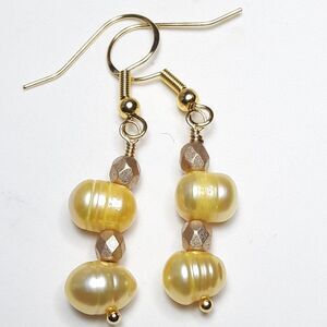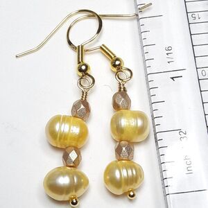 ● If you treat yourself once a month, consider my shop for your next purchase. ● Artisan earrings 060# dangle earrings Pearl earrings yellow pearls freshwater Bohemian glass coquette fairy dainty earrings k earrings party earrings