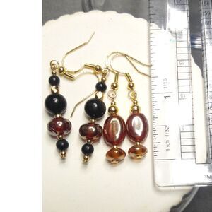 Artisan earrings 153# NEW bohemian Onyx Umber earrings long dangle gemstone ea 2PairSet