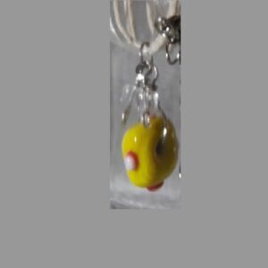 Funky Polkadot Yellow Orange, White color 15mm Bead & Crystal accents Lampworked Glass Bead