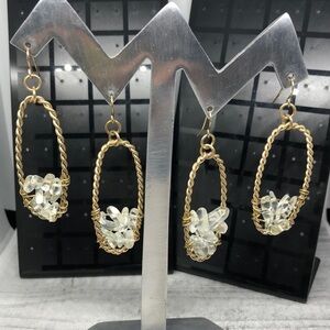 Gold tone with wired cluster of either gemstone or glass bead/chips.