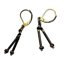 ✨ Pair 3: Modern brass & gunmetal bar dangle with gold-tone leverback.