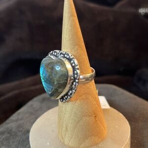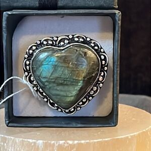 Artisan Crafted Labradorite Heart Ring in 925 Sterling Silver Sz 8. New, TCW is 47. 1” length and 12g weight. Gorgeous flash on this one.