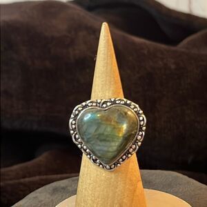 Artisan Crafted Labradorite Heart Ring in 925 Sterling Silver Sz 8