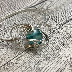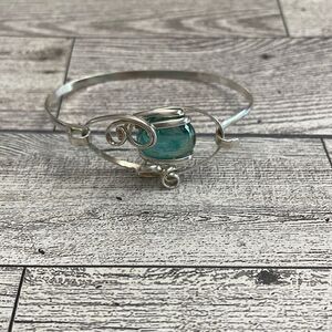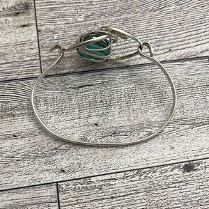 Artisan Crafted Silver Twisted Bracelet 8”. Stone is an opalescent aqua blue green. Bracelet has a looped hook type closure. Very good condition.
