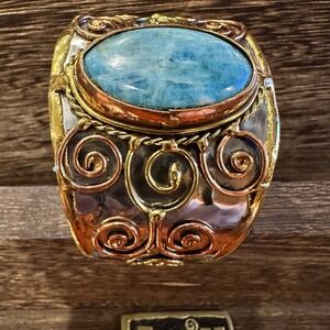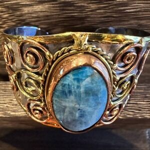 Artisan-Made 2-inch Wide Cuff Bracelet with Apatite Stone and Mixed Metals, Adj