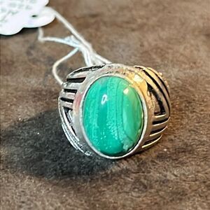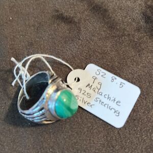 Artisan Made Malachite Ring in 925 Sterling Silver 8.5, weight is 9g.
