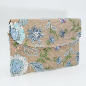 Artisan-Made Straw Clutch Purse: Sequin Embroidery for Summer Gatherings
