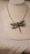 Dragonfly Pendant Brooche with Green Silk Cord Necklace