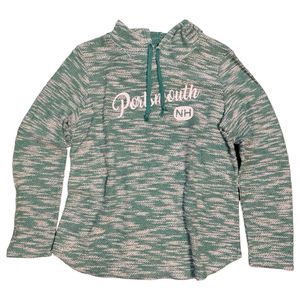 Heathered green cotton / polyester hoodie with Portsmouth NH printed on the front