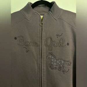 Artisans Inc. Womens Barn Girl Embroidered Full Zip Sweatshirt Purple 2 Pockets