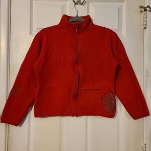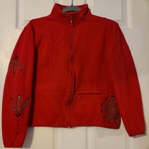 Artisans Red Fleece Embroidered Sweater Jacket Small