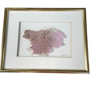 Artist Kathy Shelton Gold Framed Abstract 3D Art Piece Purple Pink Gold