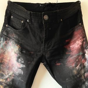 We’ve created a line of pre-worn shirts and jeans based on the beautiful and unique experience of what happens in the painters studio. All paint is artist grade Oil Paint. Will not wash out! These are the real deal. A bit of stretch. Super Comfortable. 30x30 but fit up to 32.