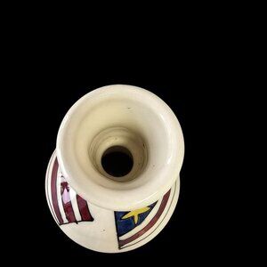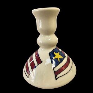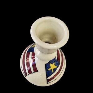 Artist Signed Hand-Painted Ceramic American Flag Candle Holder Vintage