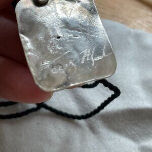 A few things to know: this is handmade and irregular, it tests for .925 sterling but is unmarked and I am unable to make out the artist signature at bottom of the reverse.