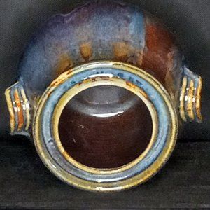 Artist Signed Studio Pottery Vase Pot Planter Vessel Two Handles Glazed Boho